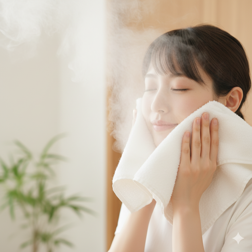 🫧夜:蒸しタオル1分+冷タオル10秒×2セット