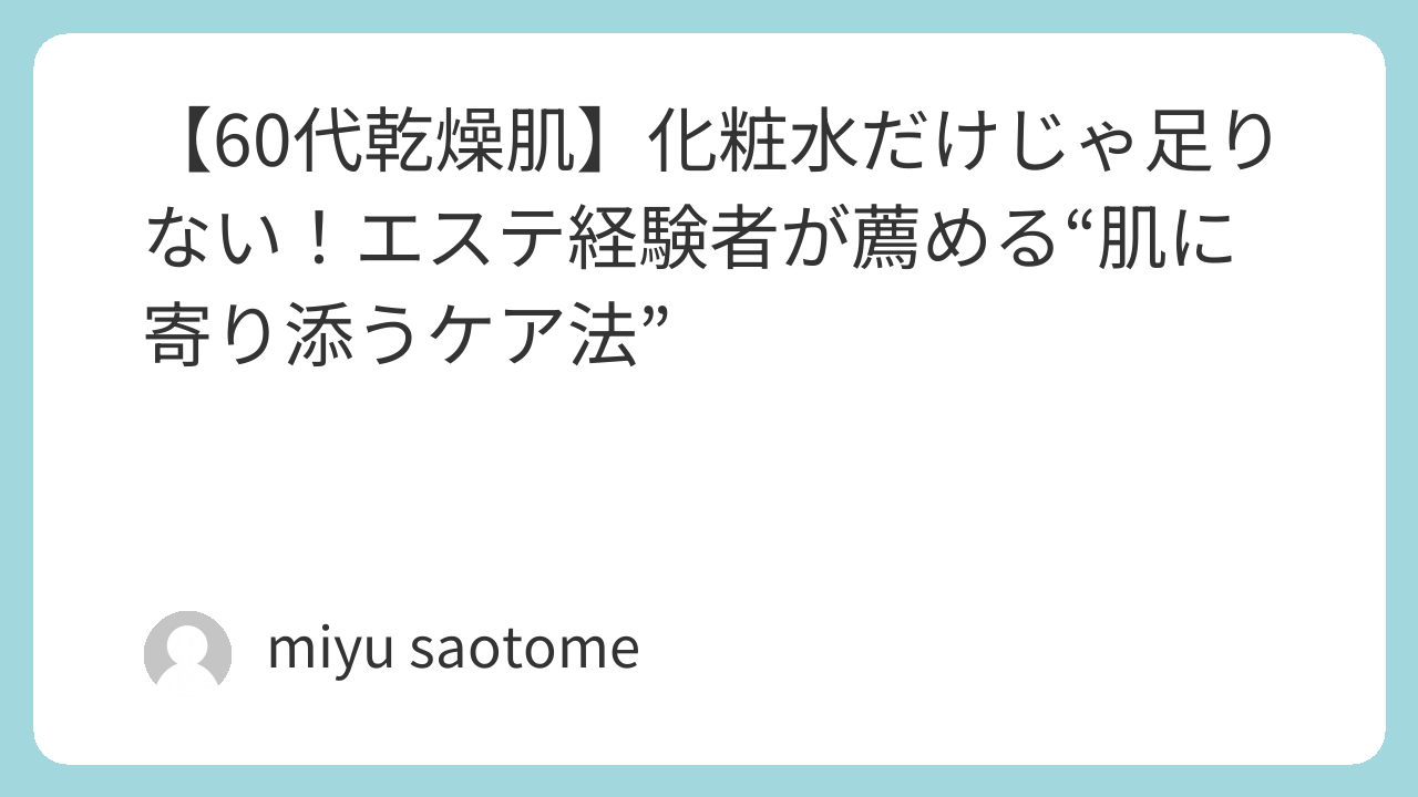 つまり、60代の乾燥肌は“水をあげる前に土を整える”必要があるんです🌱